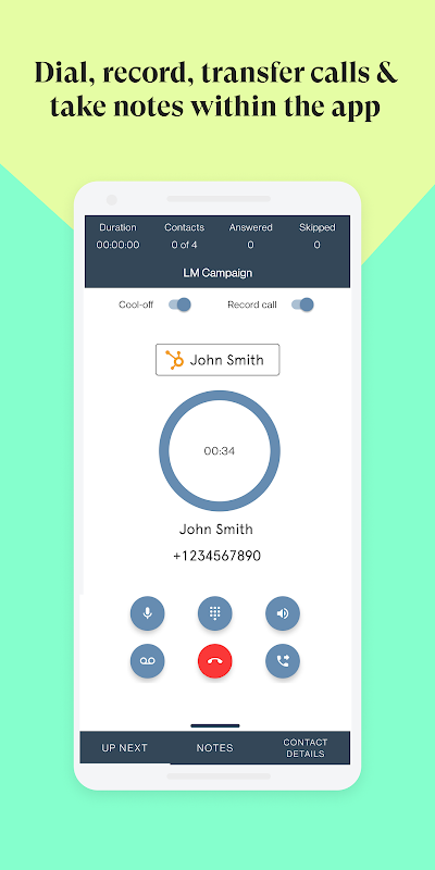 - Integração: Registre suas chamadas e também encontre o link do CRM para visualizar os detalhes de seus contatos e registros de chamadas dentro do aplicativo Sales Dialer.