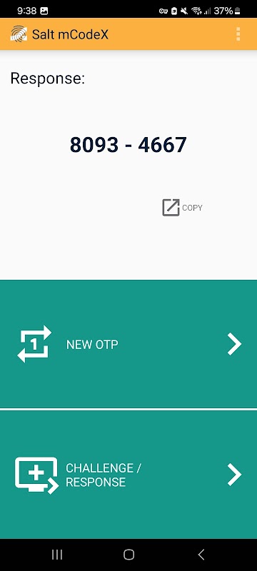 Salt mCodeX usa autenticação biométrica (face e impressão digital) para gerar senhas de uso único (OTP) e códigos de assinatura de desafio/resposta que são exibidos no dispositivo iOS.