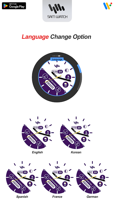 *Os aplicativos ‘SamWatch Install Guide’ são aplicativos adicionais que suportam o download de aplicativos em dispositivos Wear OS. Pode ser diferente da captura de tela do watchface do aplicativo ‘SamWatch Install Guide’ e da captura de tela do watchface que realmente foi baixada. A maioria dos produtos de aplicativos Watchface da SamWatch inclui aplicativos para smartphones. Os aplicativos do ‘Guia de instalação do SamWatch’ apenas ajudam você a baixar aplicativos Wear OS.