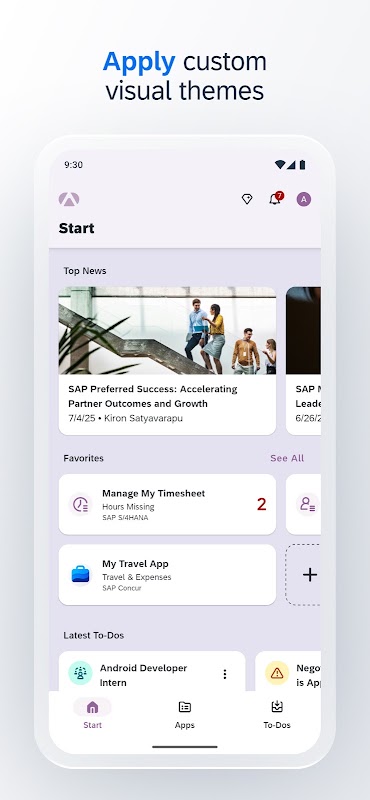 Acesse a empresa inteligente quando quiser com o SAP Mobile Start.