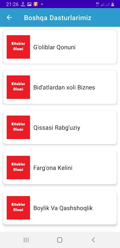 Bizning aziz kitobxonlarimiz uchun navbatdagi ajoyib kitob. Siz ushbu kitobdan o'qir ekansiz dungyoga boshqacha nigoh bilan qarashni boshlaysiz. O'zingiz uchun yangidan yangi fikrlarni kashf qilasiz. Siz uchun juda foydali kitob. Oxirigacha o'qishni maslaxat beramiz. Sizlarga ozgina foydamiz tekkan bo'lsa bundan biz juda xursandmiz. Kitoblar Olami yozuviga bosib bizning ko'plab boshqa dasturlarimizni yuklab olishingiz mumkin.