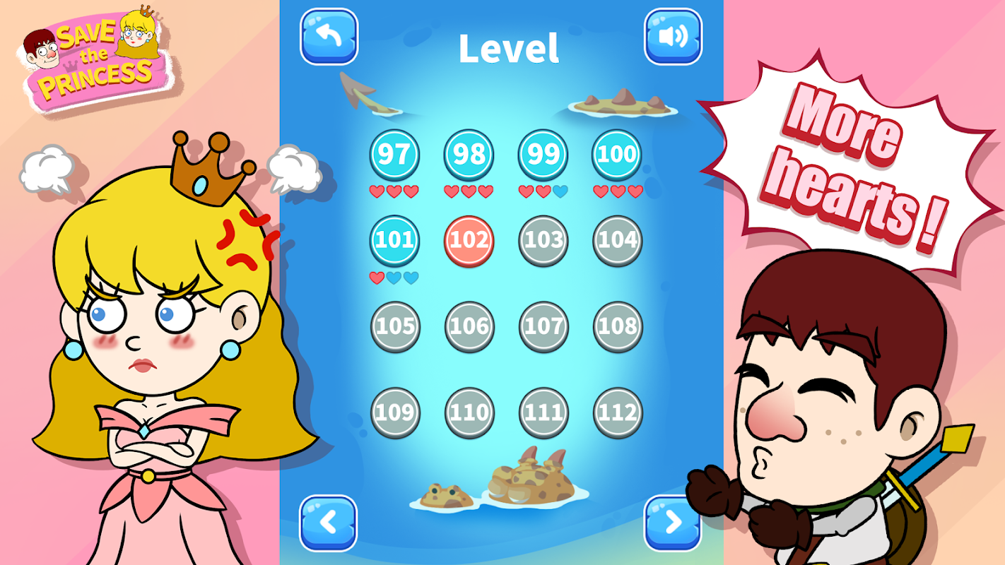 ▪ Each level has three hearts to collect, try to collect them, the princess will give the knight different rewards!
