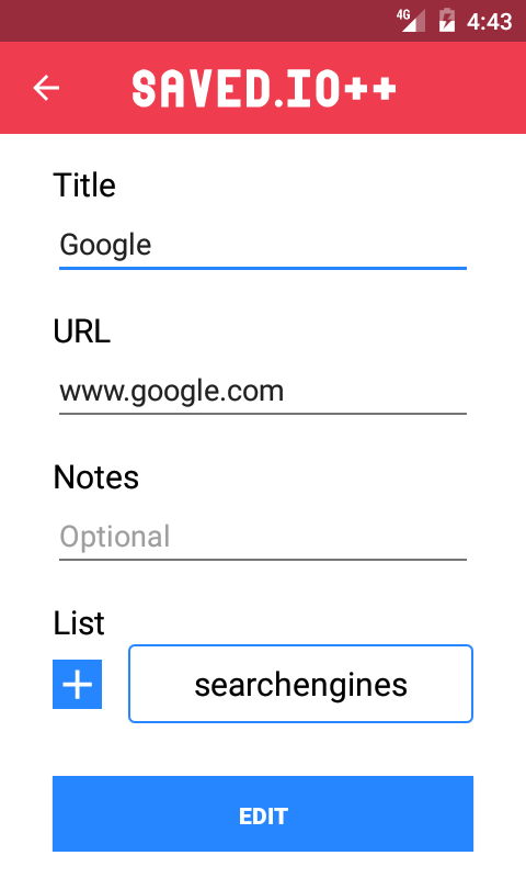 Fast, easy and small application of bookmark management. It can work completely offline with bookmarks stored in smartphone and online with http://saved.io/ service.
