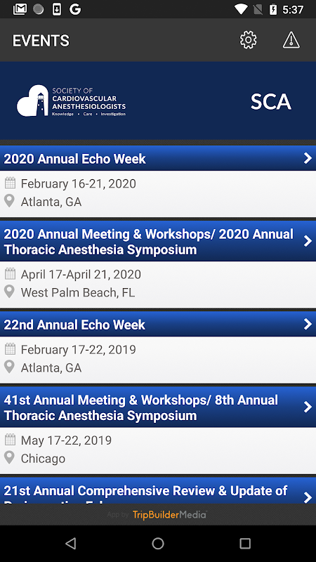 O TripBuilder Multi Event Mobile ™ é o aplicativo móvel oficial para o Simpósio anual de reuniões e workshops / Simpósio Anual de Anestesia Torácica em West Palm Beach e a Revisão e Atualização Abrangente Anual de 2020 e atualização do eco perioperatório, realizada em Atlanta, GA.