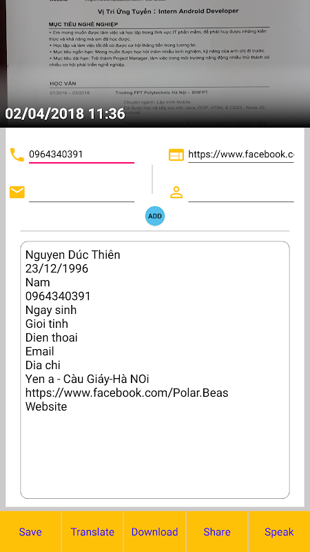 Scan text helps you scan text from image, get text from image, get email, website, phone number, address. This app also helps you translate the text to other languages.