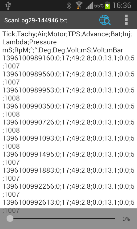 - You can connect a personal Arduino module that sends data via Bluetooth, such as lambda probes, to be added to the datalog. The format is &;val1;val2;unit;$