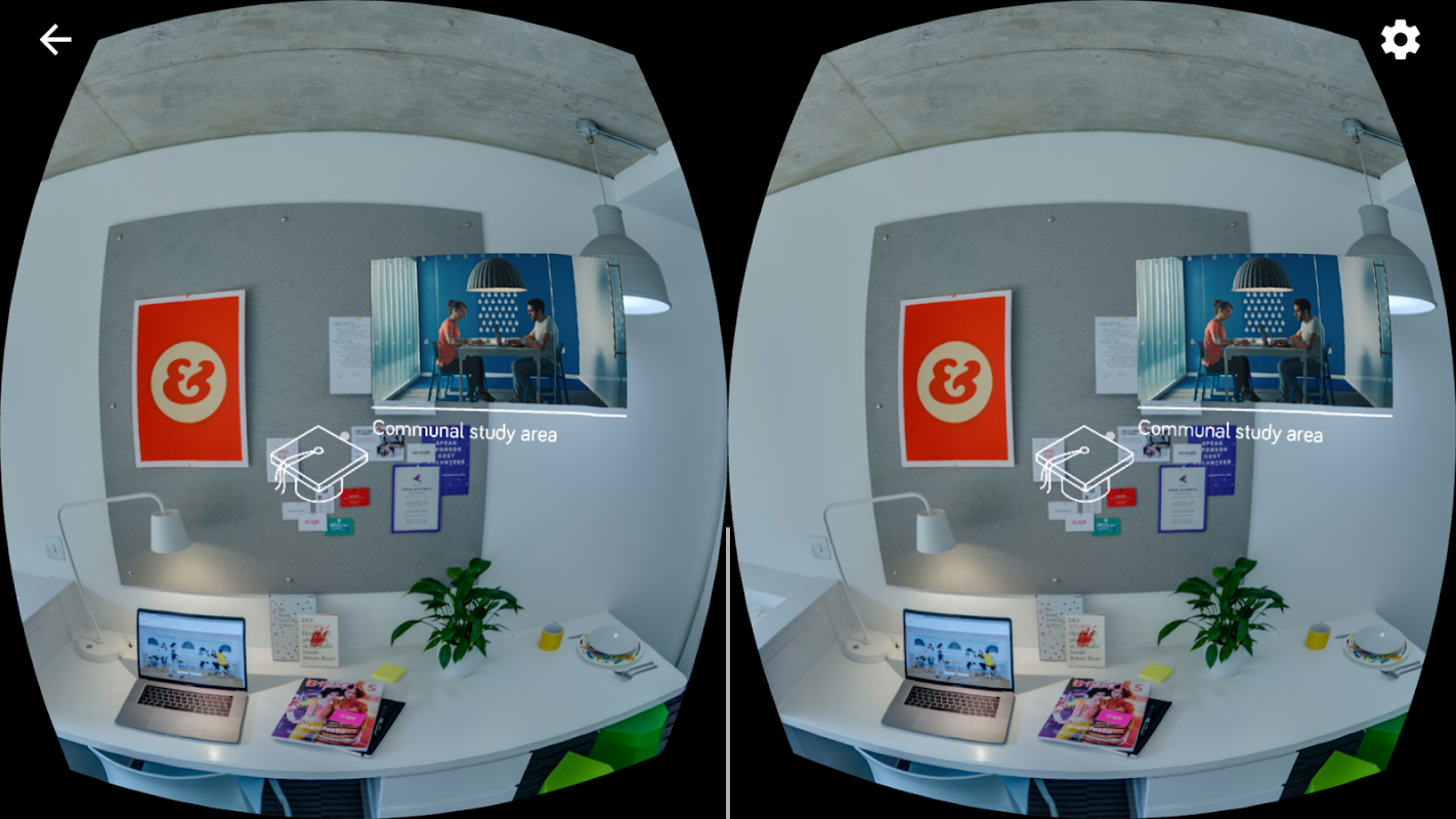 Um tour interativo VR de um estúdio Scape para ser usado com fone de ouvido cartão.