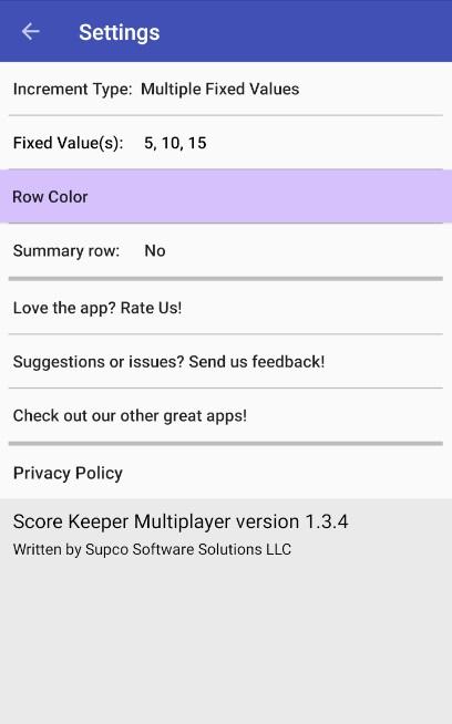 Este aplicativo de apontador permitirá que você acompanhe pontuações de qualquer número de jogadores. As pontuações podem ser ajustadas aumentando ou diminuindo a pontuação atual. O aplicativo padrão é incrementar / diminuir as pontuações em 1. Nas Configurações, você pode alterar isso para um conjunto fixo de números (um ou mais) e pode configurá-lo para permitir o incremento de qualquer número.