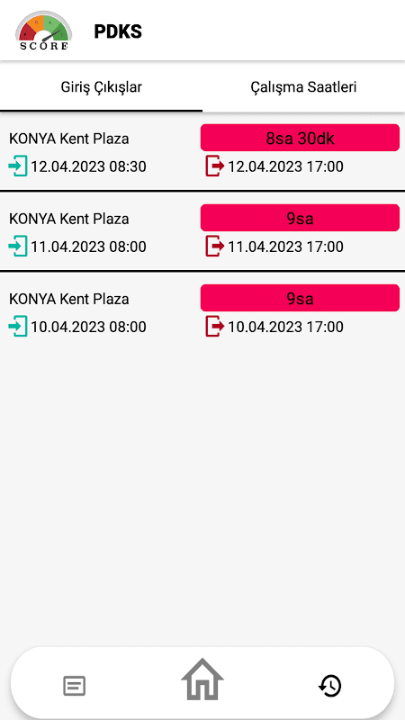 O Score PDKS é usado para rastrear os horários de entrada e saída dos funcionários. Com esta aplicação, os trabalhadores comunicam ao empregador o seu horário de trabalho, efetuando transações à entrada e à saída do local de trabalho. Nenhuma taxa é cobrada de quem usa este aplicativo. Para fazer login no sistema, primeiro é inserido o código da empresa fornecido aos funcionários pelo empregador e, em seguida, o nome de usuário e a senha. Os usuários podem ver suas horas de trabalho, em que dia e quantas horas trabalham com este aplicativo. Eles podem enviar mensagens para pessoas autorizadas e rastrear suas permissões e entradas e saídas.