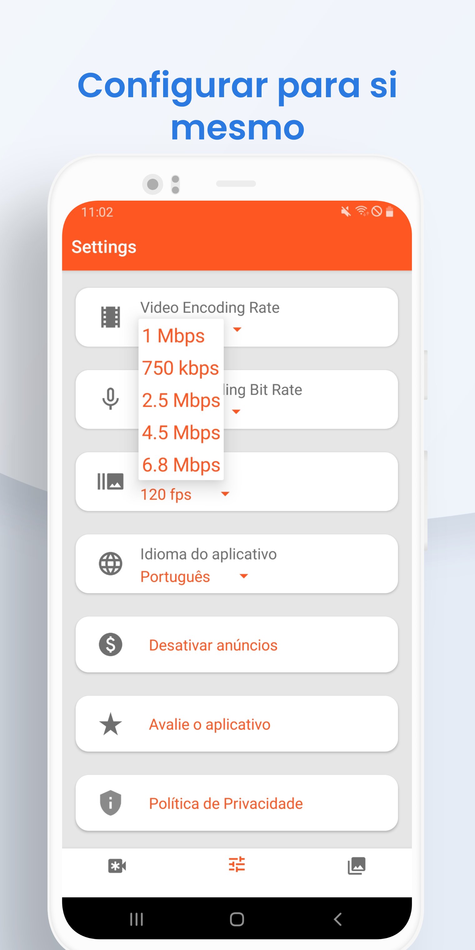 – selecione a qualidade do vídeo;