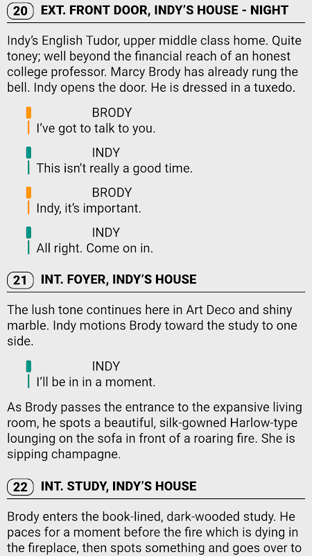 - Navegação na cena: deslize a partir da borda esquerda da tela para ver uma lista de todas as cenas do script. Toque em um para navegar diretamente para essa cena.