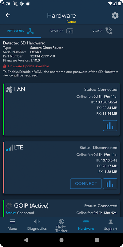 O aplicativo SD Cabin simplifica a experiência de conectividade em voo por meio do acesso direto a várias funções principais de um único aplicativo, enquanto a bordo de uma aeronave equipada com Hardware SD. O SD Cabin detecta dinamicamente os serviços ativados em sua aeronave e permite o acesso às funções com base nesses serviços. O SD Cabin fornece informações de viagem, gerenciamento de dispositivos e conectividade de rede, ferramentas básicas e avançadas de solução de problemas, além de valioso acesso à nossa premiada equipe de suporte direto Satcom.