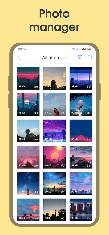 Encontre e navegue por todas as imagens no seu dispositivo ou cartão SD. Visualize, gerencie e compartilhe imagens.