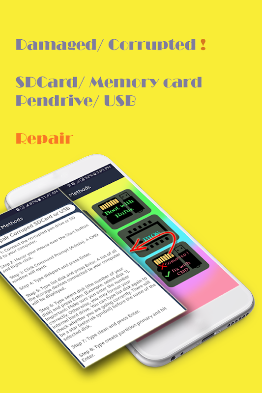 This app SDCard/USB Boot Methods and Windows Installation has brought information of damaged memory card repair step by step follow and you can repair your damage sd card recovery or damage pen drive repair, corrupt sd card repair, corrupt usb repair with CMD.