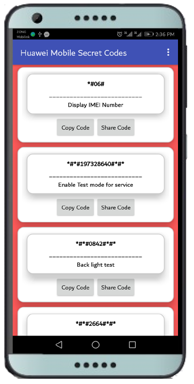 Secret codes of Huawei Application is the best application which provides the complete details of the hidden codes of the mobiles to change the setting and other function of your mobiles functions which even cant be changed in your mobiles setting personaly