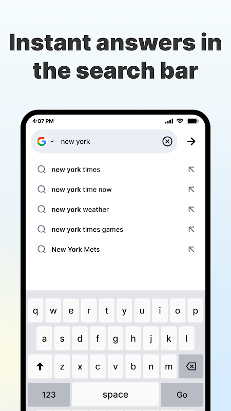 Respostas instantâneas na guia Pesquisa: Encontre rapidamente o que você precisa com resultados de pesquisa inteligentes e responsivos.