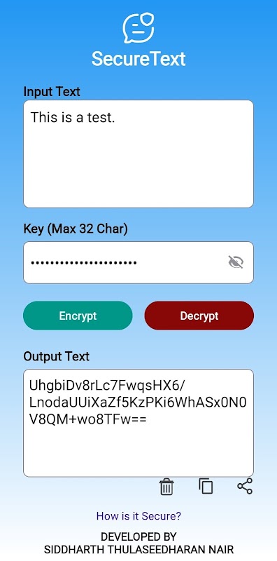 Este é um aplicativo simples e seguro que permite criptografar e descriptografar texto instantaneamente