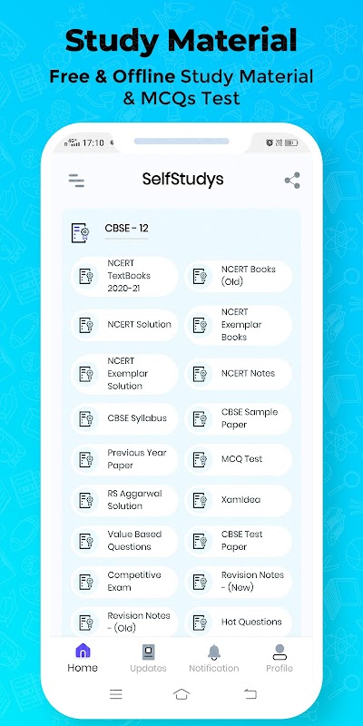 Selfstudys App is dedicated to provide you all types of study resources to help you study at home. This app includes State Board Books & Solution, NCERT textbooks & Solutions, CBSE & ICSCE Study Material, GATE, NTSE, KVPY, Navodaya Vidyalaya, Sainik School, NSO, IMO etc FREE & Offline Study Material like Books, Textbook Solution,Previous Year Paper, MCQs Test, Syllabus and a lot of more things. Everything For Free.