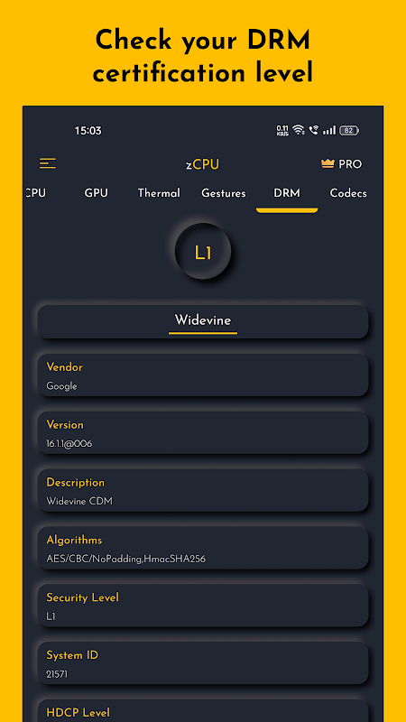 ⭐ Todos os dispositivos com resolução HD não podem reproduzir conteúdo HD em serviços de streaming. Isso se deve ao nível de certificação de um dispositivo. Se um dispositivo tiver certificação L1, o conteúdo HD poderá ser transmitido. Considerando que, se um dispositivo for certificado L2 ou L3, a resolução de streaming será limitada. Verifique o nível de certificação do seu dispositivo.