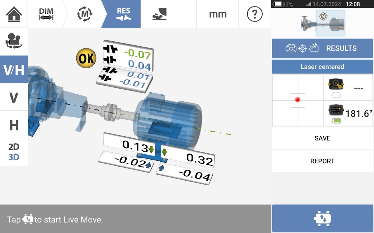 Otimize a configuração e o desempenho do maquinário com nosso aplicativo preciso de alinhamento de eixo.