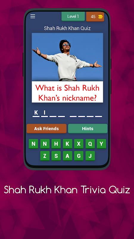 🌟Prepare-se para a aventura definitiva de quiz, estrelando o único e inigualável Rei Khan! Shah Rukh Khan Trivia Quiz é um jogo de perguntas e respostas emocionante e gratuito sobre o amado astro indiano. 🎥 Com uma variedade de modos de jogo, desafios e conteúdo baseado em eventos, você pode testar seus conhecimentos sobre os papéis inesquecíveis de SRK, fatos sobre seus filmes, seus diálogos e muito mais! 🎬