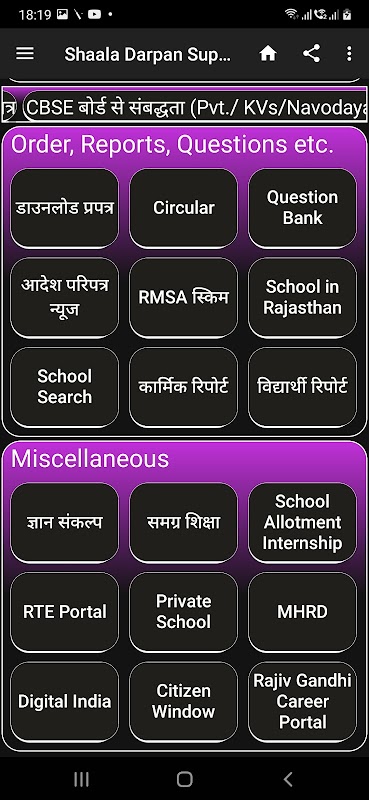 (1) Information on this app comes from the Shala Darpan, Education Portal, Samgra Shiksha, Gyan Sankalp, RAJPSP, Ministry of Education, Digital India, Rajasthan's Rajiv Gandhi Career Guidance Portal, National Scholarship Portal, National Scholarship Portal (NSP), Paymanager, Integrated Financial Management System and Rajasthan Single Sign On, , On which various works related to education are performed by the government of India and State (government). This app just open the above webpage
