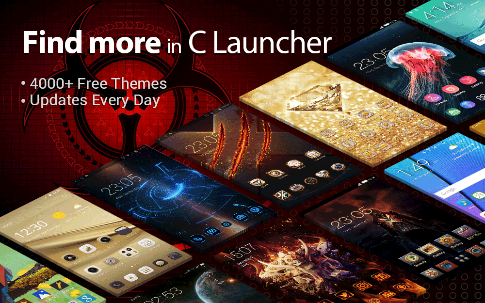 Sem problemas! Na versão C launcer 3D, você é o designer! Misture os milhares de novos papéis de parede, capas de ícones e ícones, crie novos temas. Junte-se a mais de 30 milhões de usuários do Launcher em todo o mundo e mostre-lhes a sua criatividade diretamente no seu telefone!