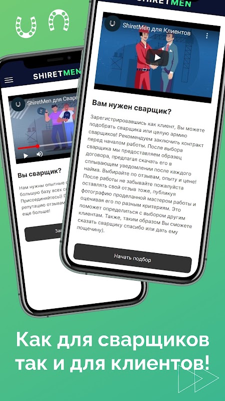 Ao se registrar como cliente, você pode escolher um soldador ou um exército inteiro de soldadores! Recomendamos assinar um contrato antes de iniciar o trabalho. Depois de escolher um soldador, fornecemos um modelo de contrato, oferecendo o download em uma notificação pop-up após cada contratação. Escolha por comentários, experiência e preço! Após o trabalho, não esqueça de deixar também o seu feedback, postando uma foto do trabalho realizado pelo mestre e avaliando-o segundo diversos critérios. Isso ajudará outros clientes a decidir. Além disso, desta forma você pode agradecer ao soldador ou dar-lhe um tapa na cara).