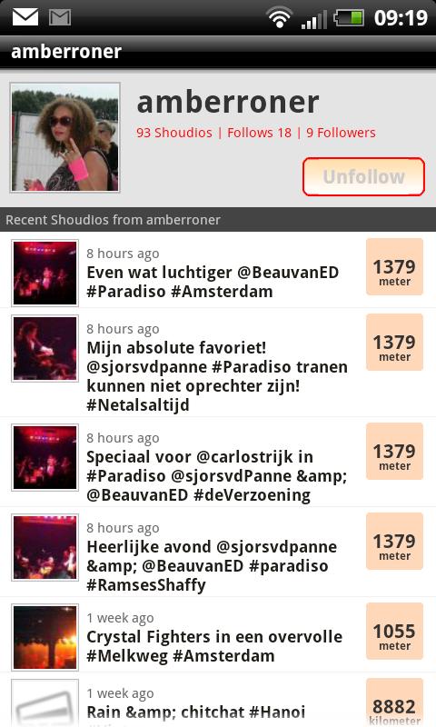 Record & Share geo-tagged audio snippets with your friends via Shoudio.com, Twitter, Facebook and Foursquare.