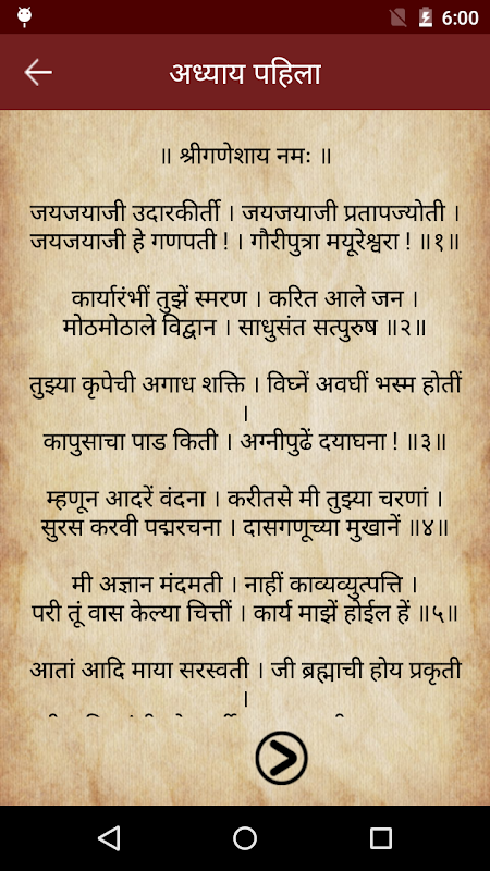 खास गजानन महाराज भक्तांसाठी श्री गजानन विजय ग्रंथ आता तुमचा फोन मध्ये. श्री गजानन विजय ग्रंथ खूप लोकप्रिय आहे. त्याचे भक्तिभावाने पारायण केल्यास इच्छीत मनोरथ पूर्ण होतात असा भक्तांचा विश्वास आहे.