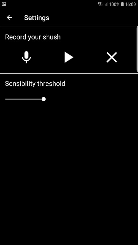 • Um som de shush é reproduzido quando o aplicativo ouve um som.