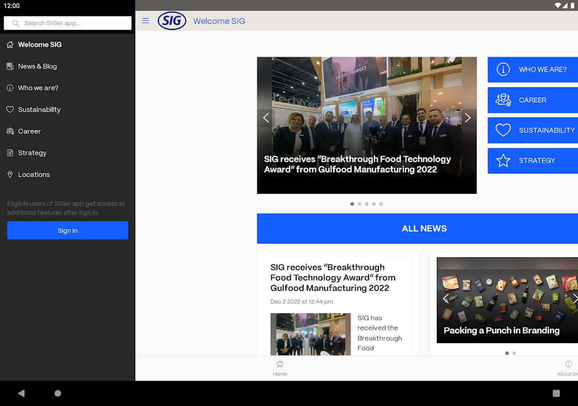 O 'app SIGer' informa todos os colaboradores, parceiros de negócios e demais interessados da SIG sobre as novidades da empresa.
