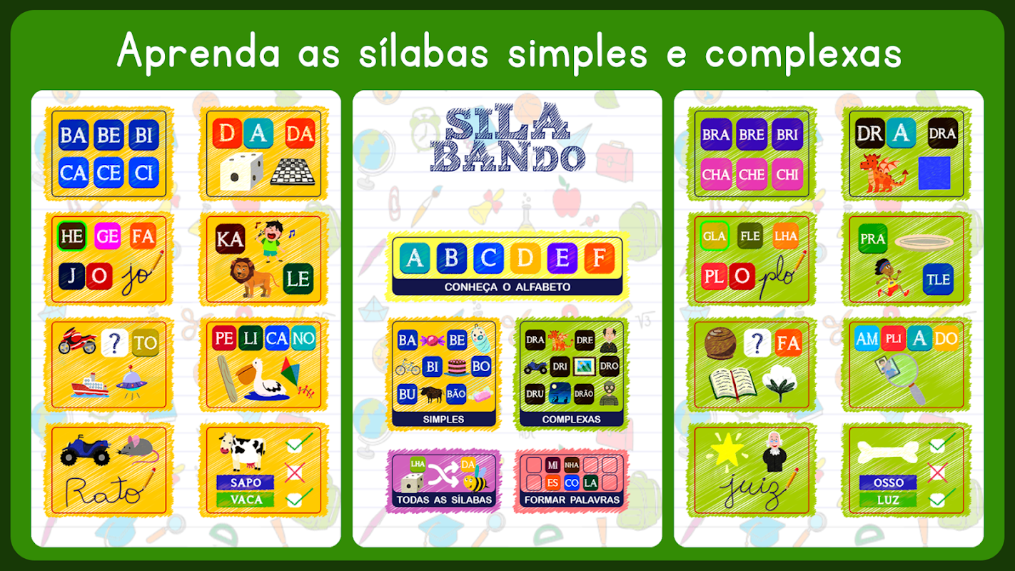 Silabando é um aplicativo feito para auxiliar seu filho no aprendizado escolar.