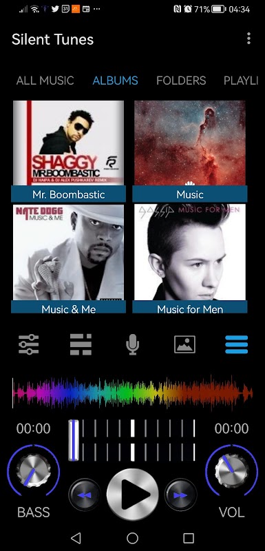 DJ Music Player Silent Tunes converte pastas de música automaticamente em listas de reprodução. É a maneira mais fácil e conveniente de criar listas de reprodução para uma pilha de MP3s de telefone. Aperte o play em uma música & o jogador faz o resto. DJ Music Player Silent Tunes transforma cada pasta de música automaticamente em uma lista de reprodução para você