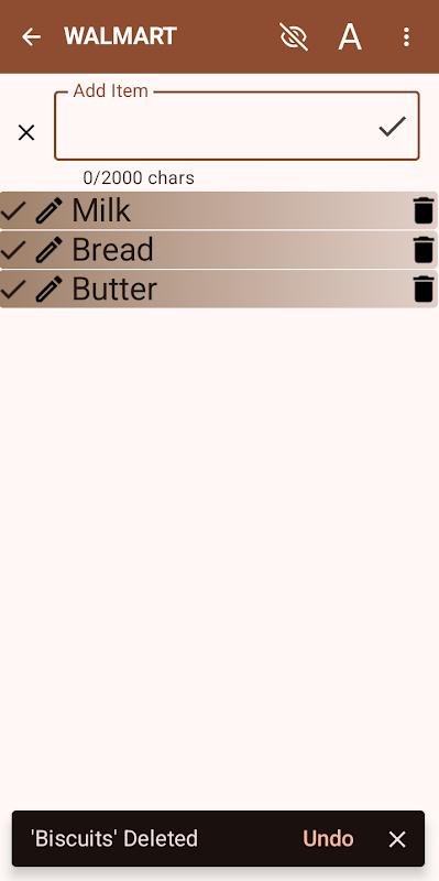 6. Marque um item como concluído/desfeito durante uma viagem de compras.