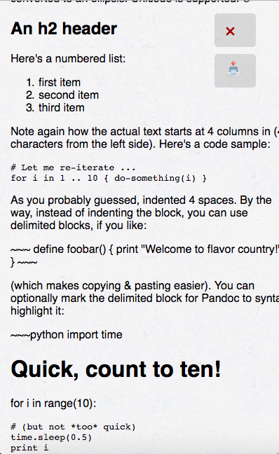 - Pré-visualização rápida do seu conteúdo como markdown ou formato HTML com o botão apropriado localizado na barra de ferramentas