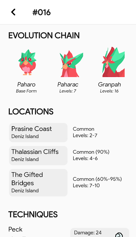 Este pequeno aplicativo inclui descrição, características, estatísticas, cadeia de evolução, localização e técnicas de todos os TemTem.