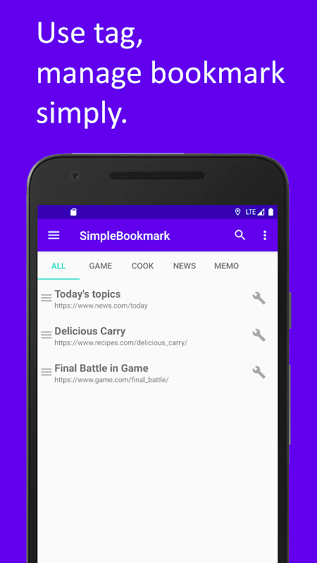 SimpleBookmark permite que você gerencie favoritos de forma mais simples.