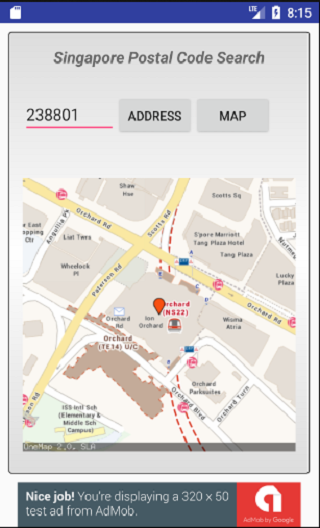 After entering the six digits postal code in Singapore, the application will return the address, including the building name, block number and road name.