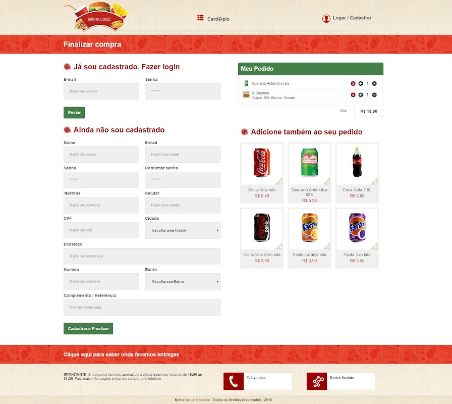 Sistema online para pedidos de pizzas, lanches, pratos, porções. Demonstração