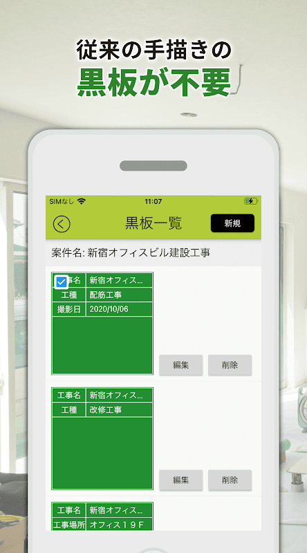 Este é um pequeno aplicativo de quadro eletrônico que não requer organização de fotos. Ao tirar fotos de canteiros de obras, você pode tirar fotos com quadros negros em seu smartphone. Você pode criar personagens do quadro-negro a partir do seu computador ou smartphone e simplesmente selecionar em uma lista para tirar uma foto. Ao vincular-se ao PROOSHARE (Web), as fotos da construção são organizadas automaticamente, dispensando sua organização.