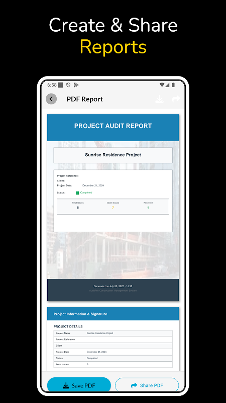 Usado por empresas em todo o mundo, o Site Audit - Captura de Problemas torna auditorias e inspeções mais rápidas, fáceis e eficientes. Seja realizando verificações de segurança, criando listas de pendências ou preparando orçamentos, o Site Audit - Captura de Problemas ajuda você a capturar detalhes importantes e compartilhar descobertas instantaneamente, com relatórios sofisticados e personalizáveis que refletem seu profissionalismo.