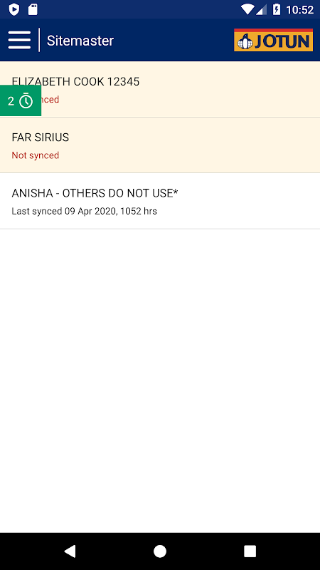 O aplicativo móvel Sitemaster é uma ferramenta digital off-line que é fundamental para a operação do site Sitemaster, o aplicativo on-line da Jotun para planejar e relatar projetos de revestimento de doca marítima em um local centralizado. O aplicativo móvel é uma ferramenta de gerenciamento de projetos de revestimento na qual os consultores de revestimento da Jotun, enquanto estão no cais, inserem os detalhes do navio, atualizam o cronograma do cais, registram extensos dados de inspeção de revestimento, tiram várias fotos e registram seus dias de serviço. Todos os dias, eles sincronizam regularmente os dados do arquivo de encaixe editado no site quando uma conexão adequada à Internet está disponível. Ao mesmo tempo, novos dados do projeto no site são sincronizados com o aplicativo. Assim, o aplicativo e o site permanecem alinhados e atualizados para cada projeto de revestimento. O Sitemaster fornece aos funcionários da Jotun uma visão detalhada e em tempo real do progresso, das atividades, do desempenho do revestimento e dos resultados do aplicativo por meio do aplicativo e site para celular.