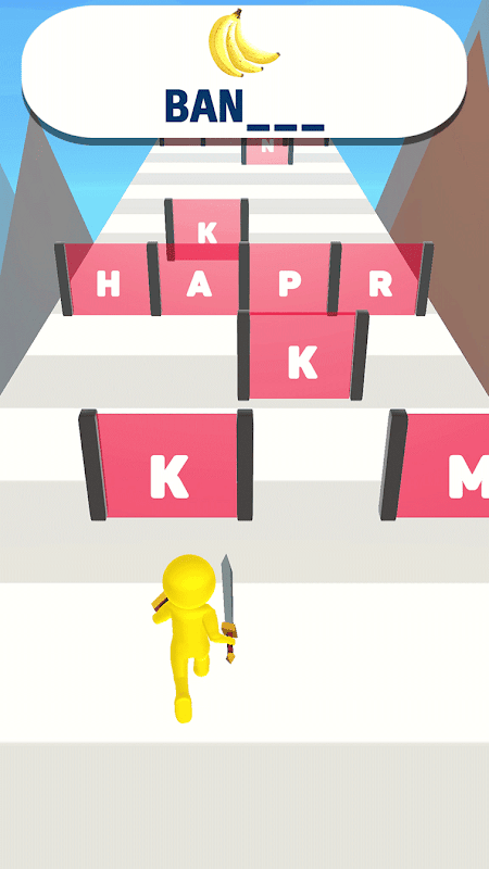Run through the gates, pick up the letters, spell out the word.