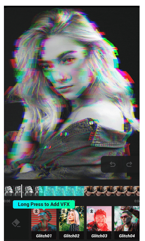 Glitch Video Effect é o melhor editor de vídeo e editor de fotos para criar vídeos retrô. Você pode adicionar efeitos VHS, efeitos Glitch, efeitos fílmicos e também efeitos de vídeo antigos.