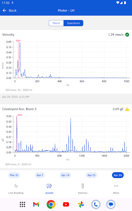Usando o sensor e o aplicativo SKF QuickCollect, qualquer pessoa pode monitorar a integridade da máquina sem treinamento extensivo ou experiência em diagnóstico. O aplicativo SKF QuickCollect fácil de usar permite identificar de forma rápida e fácil a condição da sua máquina. Os dados históricos mostram como a integridade da máquina muda ao longo do tempo.