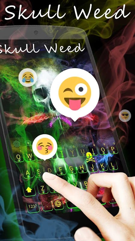 When you think the words are not enough to express your feelings and thoughts, try sending emoticons! Our keyboard (skull colored weed rasta typewriter) comes preloaded with a lot of Emoji, adding more fun for your chat interaction!