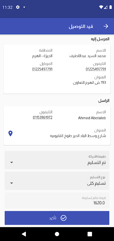 يسمح التطبيق لجميع العملاء في جميع أنحاء الجمهورية بإدارة تسليم واستلام الشحنات باستخدام الهاتف المحمول