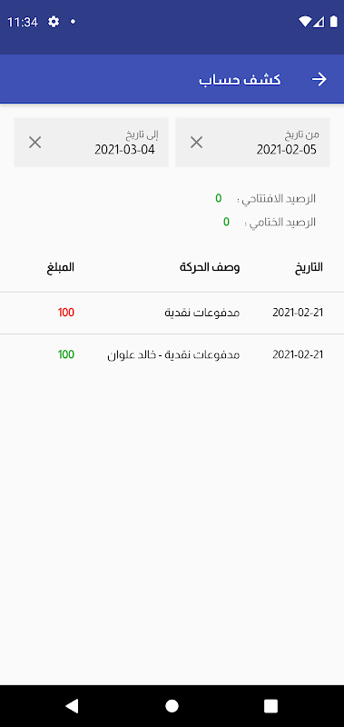 • كشف حساب العميل به تفاصيل المعاملات المالية