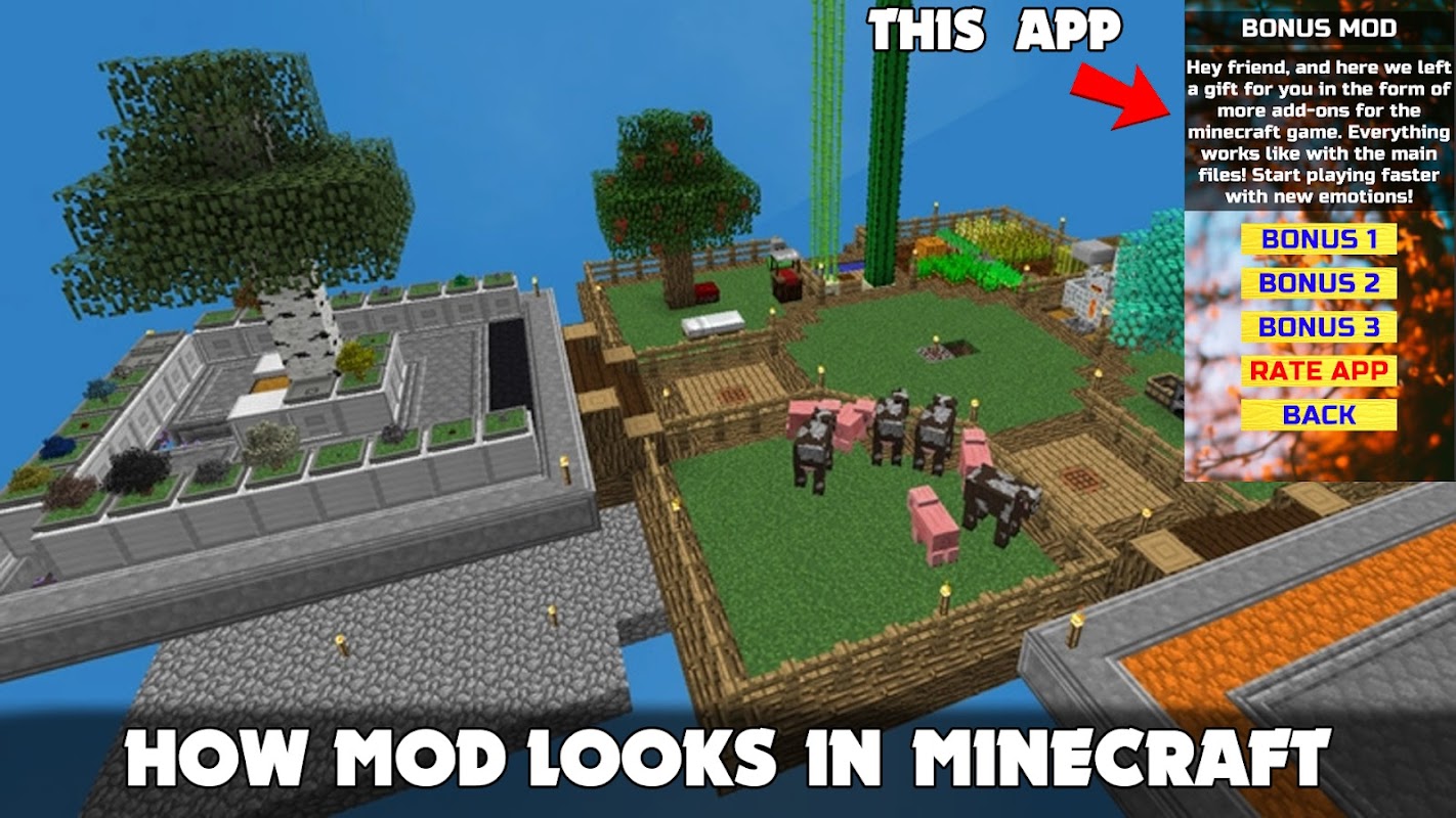 🤩 Sky Factory Mod for Minecraft PE 🤩 this is a launcher app that helps you import mods into a game called MCPE!
